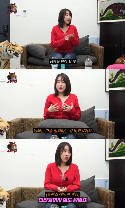 성형비용에 대해서는 “벤츠 가장 좋은 클래스 정도”라며 약 1억 5천만 원이 들었다고 고백했다. 그러면서도 “개그우먼으로서는 지금 성형에 만족한다. 하지만 더 하고 싶은 곳도 있다. 다만 그렇게 하면 개그우먼 생활을 못 하게 될까 걱정된다. 돼지코 개그 같은 걸 못 할 수도 있어서 고민”이라고 솔직하게 전했다.