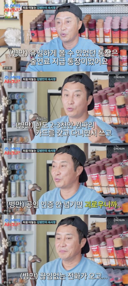 김병만은 “경제적인 문제가 제일 힘들었다. 경제권을 요구를 해서 제 공인 인증, 주민등록증까지도 다 소유하고 있었다. 유일하게 볼 수 있었던 것은 출연료가 들어오는 통장이었다. 그 외에는 못 본다. 비밀번호도 모른다. 바뀌어 있다. 은행에 가서 분실 신고를 해서 찾는다”라고 말했다.