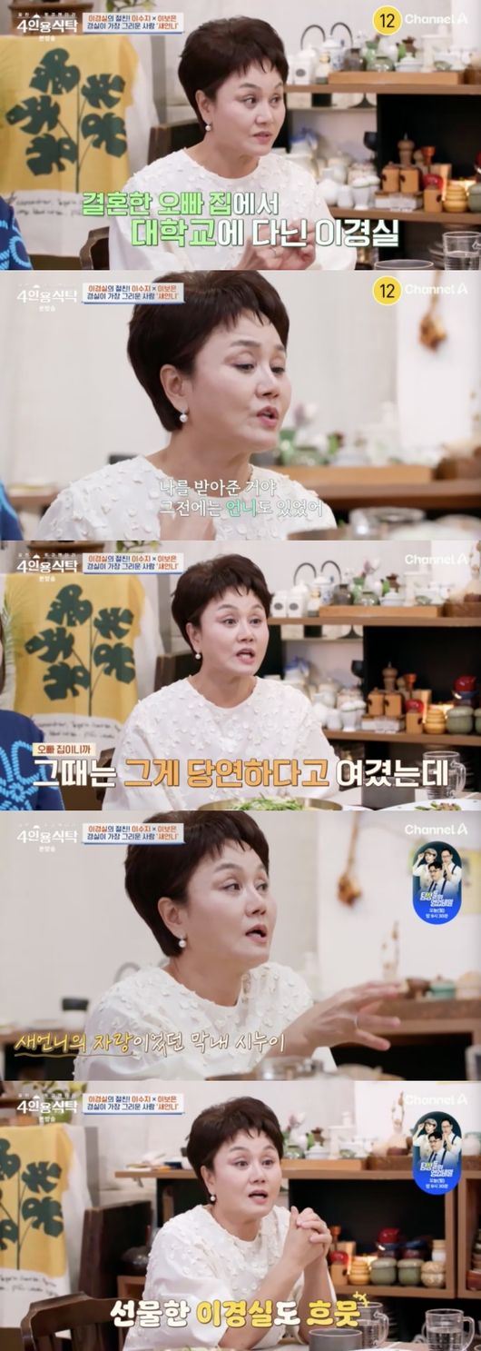이경실은 “내가 정말 그리워하는 사람은 우리 새언니다. 새언니가 가끔 그립다. 결혼한 우리 오빠 집에서 대학교를 다녔다. 첫 번째 결혼할 때까지 거기서 살았다. 새언니가 나를 받아준 것이다. 나 전에 우리 언니도 있었다”라고 덧붙였다.