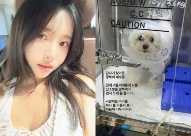 공개된 사진에는 동물병원에 입원한 박성광, 이솔이의 반려견 광복이가 담겼다. 산소방에 들어가 있는 광복이의 자리에는 "호흡곤란"이라는 증상이 적혀 있어 안타까움을 자아낸다.