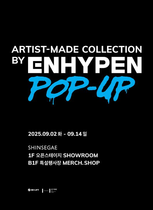 26일 소속사 빌리프랩에 따르면 ‘아티스트-메이드 컬렉션 바이 엔하이픈 팝업’(Artist-Made Collection by ENHYPEN POP-UP)이 내달 2일부터 14일까지 13일 간 서울 서초구 신세계백화점 강남점에서 개최된다.