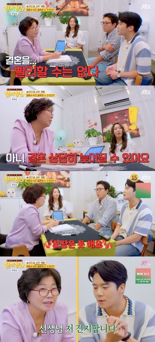 사장님은 하석진에 대해 “연예인이 아니면 교수가 됐을 것이다. 눈이 좀 크다. 결혼을 빨리할 수는 없다. 결혼이 상당히 늦어질 수 있다. 아마 2022년, 2023년에 이성이 들어올 순 있었다. 결혼으로 이어지지는 않았다. 마음에 드는 사람이 있어도 소극적으로 대한다. 표현력이 좀 부족하다. 상대를 잘 알아야만 건너가는 사주다”라고 말했다.