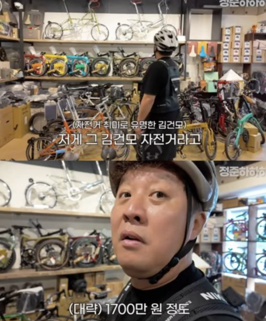 정준하는 개인 채널 ‘정준하하하’에서 취미 자전거를 즐기는 모습을 공개하며 경기도 성남시 분당구의 자전거 전문점을 찾았다. 그는 고가의 접이식 자전거를 살펴보던 중 직원으로부터 “그 자전거는 김건모 자전거로 유명하다”라는 설명을 듣고 놀라움을 감추지 못했다. 해당 모델은 1,700만 원으로 전 세계 191대 한정 생산된 한정판이었다.