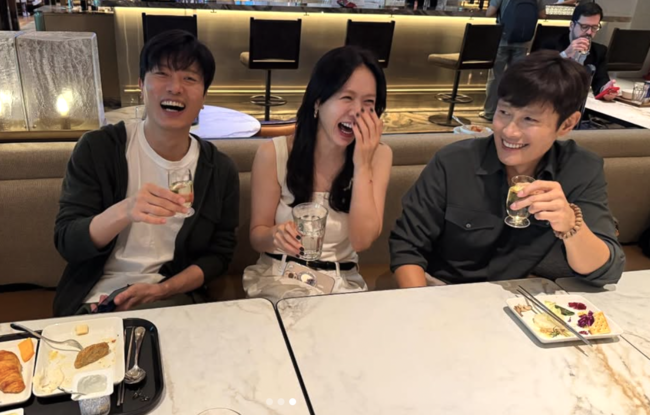 공개된 사진 속 손예진은 배우 이병헌, 박희순과 함께 출국 전 여유로운 시간을 보내고 있는 모습이다. 환한 미소와 편안한 분위기 속에서 영화제를 앞둔 설렘이 고스란히 전해진다.