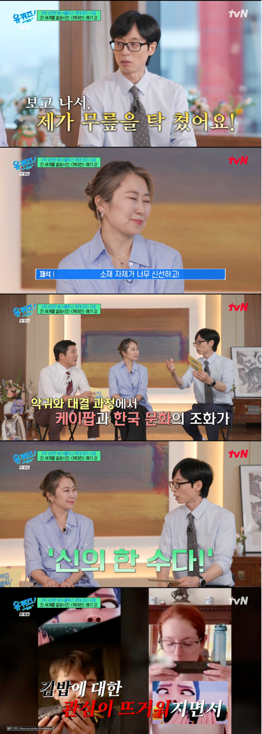 27일 전파를 탄 tvN ‘유 퀴즈 온 더 블럭’에는 넷플릭스 애니메이션 영화 '케이팝 데몬 헌터스'(이하 '케데헌')의 매기 강 감독이 게스트로 출연했다.