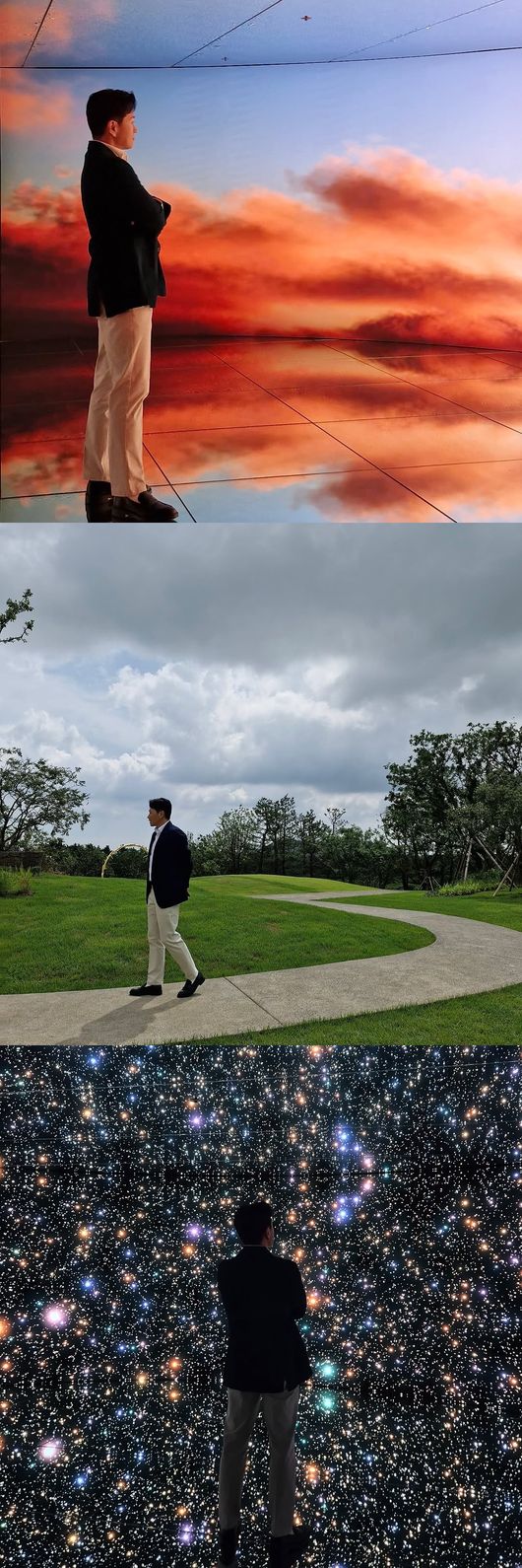 공개된 사진은 제주 뮤지엄을 방문한 것으로 보이는 진태현의 모습. 사진 속 그는 평화로운 표정으로 시간을 보내고 있으며, 유산의 아픔을 치유하는 듯한 모습으로 뭉클함을 더했다.