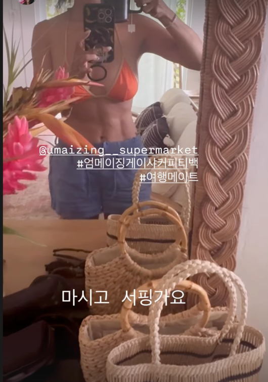 28일 엄정화는 ‘마시고 서핑가요’라며 한 장의 사진을 게재했다.