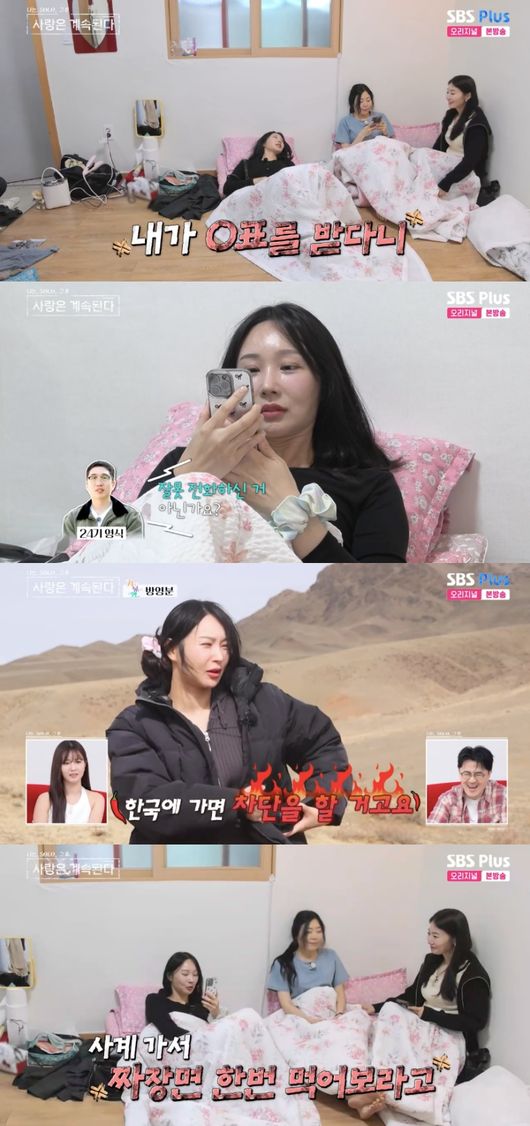 티격태격 했던 두 사람. 앞서 옥순은 여행에서 “한국가면 차단할 거다. 영원히 볼일 없을 듯”이라고 선언한 바 있다. 이에 24기 옥순은 “방송이니까 차단한 거 비밀로 해달라”라고 말을 막았다.