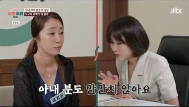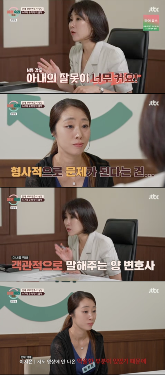 아내와 상담을 진행한 양나래 변호사는 "남편의 잘못을 주장해 위자료를 받을 만한 부분이 거의 없다"고 단호하게 말했다. 이어 "섭섭하고 한이 될 수는 있지만, 이는 법적으로 유책에 해당하지 않는 부분이 많다"며 오히려 아내에게 유책 사유가 있어 위자료를 줘야 할 수도 있다는 반전 결과를 내놨다.