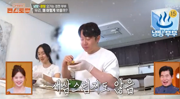 요리 과정에서 티격태격하던 부부의 케미는 곳곳에서 드러났다. 이정현이 “냄비 가져와라”라고 주문하자 남편은 “직접 가져와라”고 투덜대면서도 결국 다 해주는 모습으로 웃음을 안겼다.
