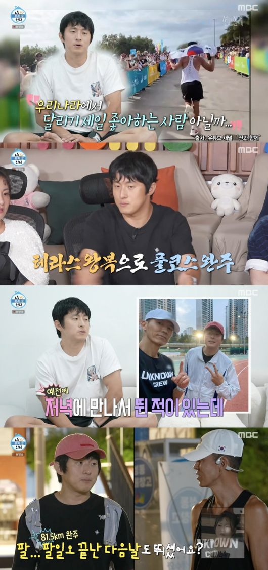 션이 이끌고 있는 언노운 크루를 만난 기안84는 션에 대해 “달리기 선수분들이 400~500km 뛴다. 근데 션 형님은 더 뛴다. 많이 뛰면 700km다. 한 달에 선수들보다 더 많이 뛴다. 코로나 때는 대회를 못 나가니까 테라스에서 왕복으로 풀코스를 완주했다고 하더라”리고 전해 놀라움을 안겼다.