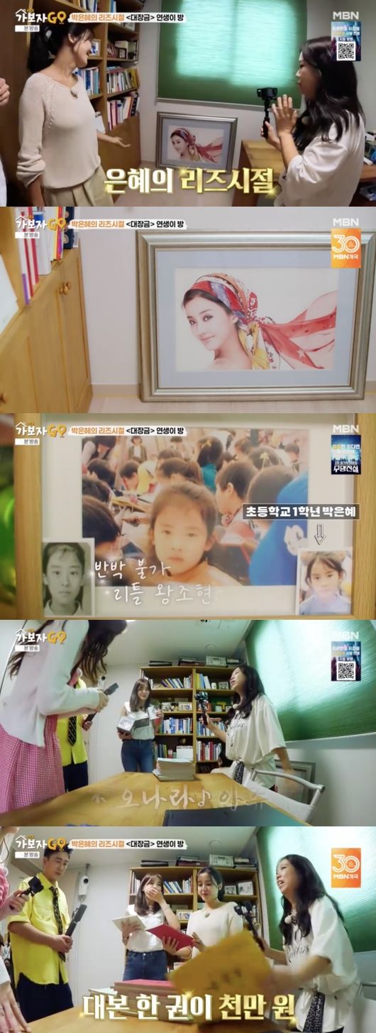 이후 박은혜는 연기의 역사가 담긴 서재를 공개하기도. 박은혜는 20대 리즈시절을 담은 액자를 공개했다. 박은혜는 모태 미녀를 인증하는 초등학교 1학년 사진을 공개했고 이에 모두가 ‘리틀 왕조현’이 맞다고 공감했다.