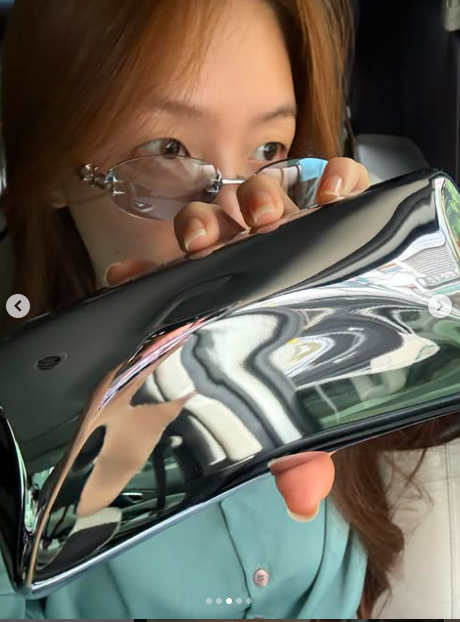 이어 선글라스를 착용한 채 셀카를 찍으며 민낯에도 불구하고 잡티 하나 없는 피부와 미모를 자랑해 눈길을 사로잡았다.