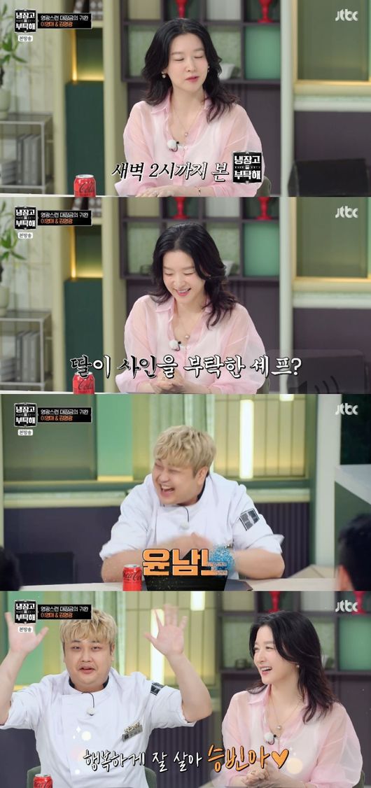 신이 난 윤남노에 이영애는 “딸이 15살이다. 딸한테 영상편지 한 번만”이라고 부탁했다. 윤남노는 이영애 딸 이름이 ‘승빈’이지만 잘못된 출력 오류로 ‘수빈아’라고 말해 웃음을 자아냈다.