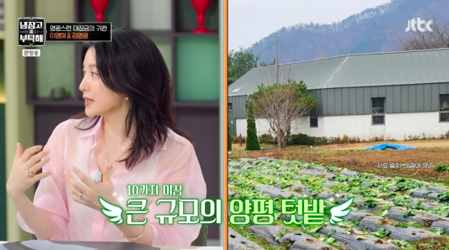 양평에서 8년 동안 살았다는 이영애는 “양평에서 집 밖을 나가면 바로 텃밭이 있었다. 10가지 넘게 직접 했다. 지금은 (서울 집) 옥상에 작은 텃밭이 있다”라고 밝혔다.