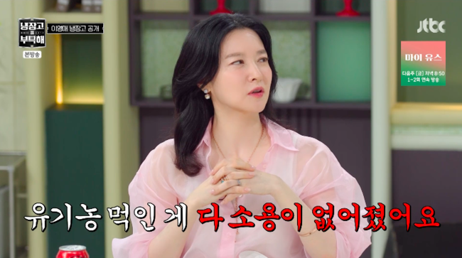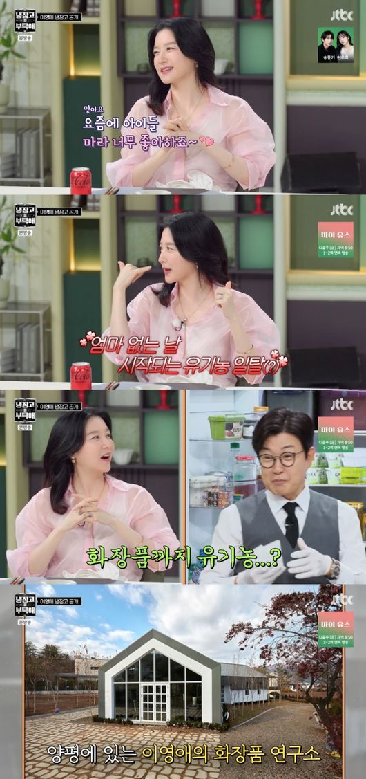 무엇보다 냉장고에는 화장품이 발견됐다. 이영애는 “제가 아이 낳고 화장품을 만들었다. 양평에 살면서 양평에도 연구소가 있다. 집 앞에 연구소가 있어서”라며 셰프들을 향해 “나중에 드리겠다. 써보셔라”라고 밝혀 눈길을 끌었다.