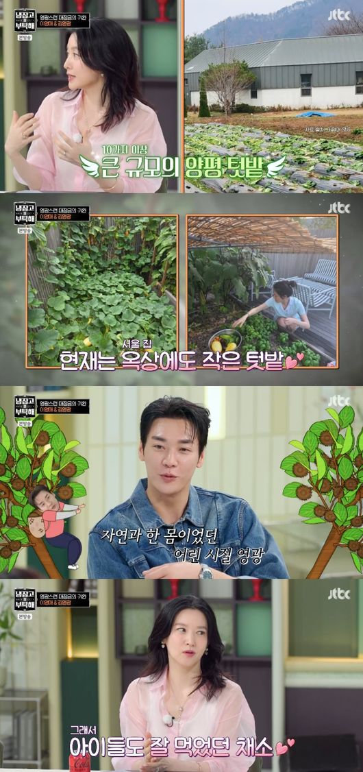 이외에도 튼실한 가지, 노각, 참외, 고추, 루콜라, 민트, 고구마, 옥수수, 감자, 마늘 등 각종 유기농 식재료가 쏟아졌다. 재배가 까다로운 마늘도 직접 키웠다는 이영애에 최현석은 “식재료비가 안 들겠다”라고 했고, 안정환은 “농협인데”라고 감탄했다.