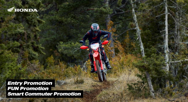모던 어드벤처 크로스오버 모터사이클 NX500 구매 고객 대상으로는 의류/용품 지원금 100만원을 제공하고, 온·오프로드를 자유롭게 달리는 듀얼 퍼포즈 모터사이클 CRF300L을 구매할 경우, 10개월 제휴금융 무이자 할부 또는 32만원 할인이 적용된다. 이 중 NX500과 CRF300L은 엔트리 지원 프로모션과 중복 적용 가능해 매매계약일 기준 1년 이내 2종 소형 면허를 취득한 고객이라면 50만원 상당의 구매 혜택을 추가로 제공한다.