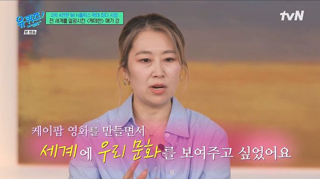 앞서 지난달 27일 방송된 tvN '유 퀴즈 온 더 블럭' 308회에는 넷플릭스 영화 '케이팝 데몬 헌터스'의 흥행으로 뜨거운 관심을 받고 있는 메기 강 감독과 빌 게이츠 등이 게스트로 출연해 이야기를 나눴다.