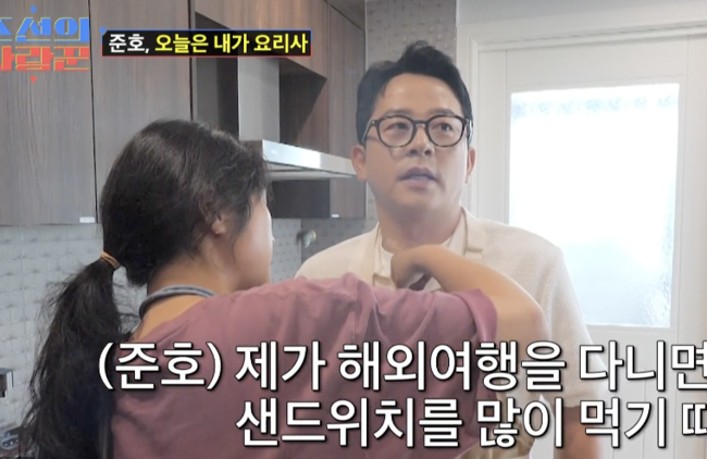 이어 앞치마를 입은 김준호는 “가끔 내가 이츰을 해준다 오늘 내가 요리사”라며 아보카도 샌드위치를 준비,“너무 설정같다”는 제작진 말에 김준호는 “원래 결혼이 설정이다”며 “매일 이벤트를 해줘야행복하기 때문, 사랑꾼 왔다고 이러는게 아니다”고 했다. 이에 김지민도 “이벤트 진심이긴 하다”고 인정했다.