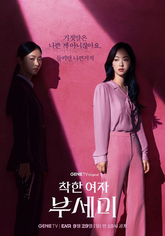 오는 9월 29일(월) 첫 방송되는 지니 TV 오리지널 ‘착한 여자 부세미’(연출 박유영/ 극본 현규리/ 기획 KT스튜디오지니/ 제작 크로스픽쳐스, 트리스튜디오)는 인생리셋까지 카운트다운 3개월, 한 방을 꿈꾸며 시한부 재벌 회장과 계약 결혼을 감행한 흙수저 여자 경호원이 막대한 유산을 노리는 이들을 피해 3개월간 신분을 바꾸고 살아남아야 하는 범죄 로맨스 드라마다.