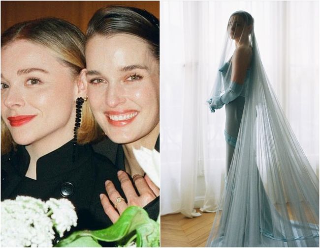 웨딩드레스는 전통적인 화이트가 아닌, 루이비통에서 맞춘 블루 드레스를 택했다. 모레츠는 “나는 ‘화이트 드레스 신부’가 될 거라 생각한 적이 없다. 이 색이 나답다”고 말했다. 두 사람은 피팅 당시에도 서로의 드레스를 미리 보지 않는 전통을 지켰다.