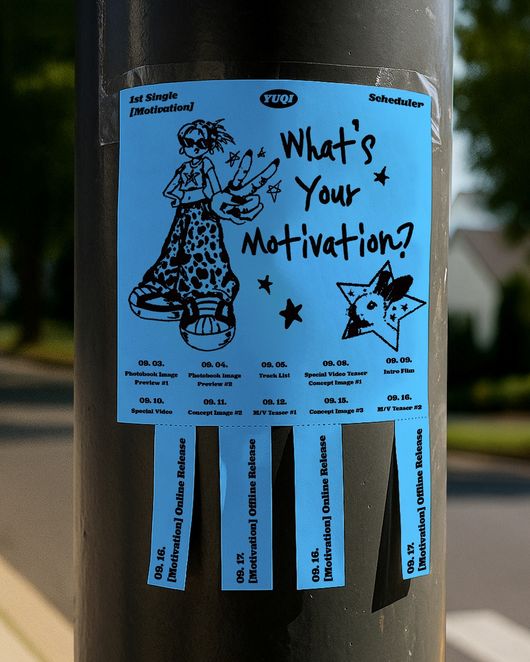 우기는 오는 3일 포토북 이미지 프리뷰를 시작으로 트랙리스트, 인트로 필름, 스페셜 비디오, 콘셉트 이미지, 뮤직비디오 티저 등 싱글 발매까지 다양한 프로모션으로 글로벌 팬심 저격한다. 프로모션 스케줄러는 90년대 힙합룩을 입은 키치한 캐릭터와 우기를 상징하는 토끼가 그려진 길거리 전단지 형태로, 티저 이미지에 이어 'What's Your Motivation?'이라는 질문을 던져 궁금증을 더했다.