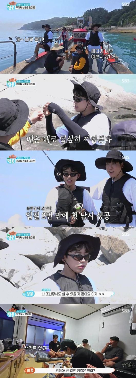 이어 멤버들은 먹거리를 구하기 위해 인생 첫 낚시에 도전했다. 임영웅은 “낚시가 처음이라 기대된다”며 설렘을 감추지 못했고, 궤도는 “너가 원래 새로운 취미가 생기면 엄청 빠지잖아. 낚시에 빠져서 아마 쉴 때마다 낚시를 다닐 수도 있다”고 했고, 이에 임영웅은 “평생 안 해본 것도 그 이유가 있다. 하면 너무 빠질까봐”라고 답했다.