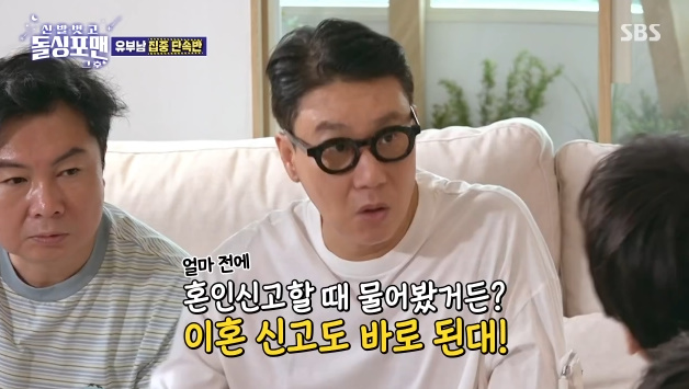 차태현은 "그러잖아. 뭐가 많지 않아? 꽤 걸리잖아"라고 의아함을 드러냈고, 이상민은 "내가 혼인신고할때 물어봤거든? 이혼신고도 바로가서 하면 끝난대"라고 답해 이목을 끌었다.