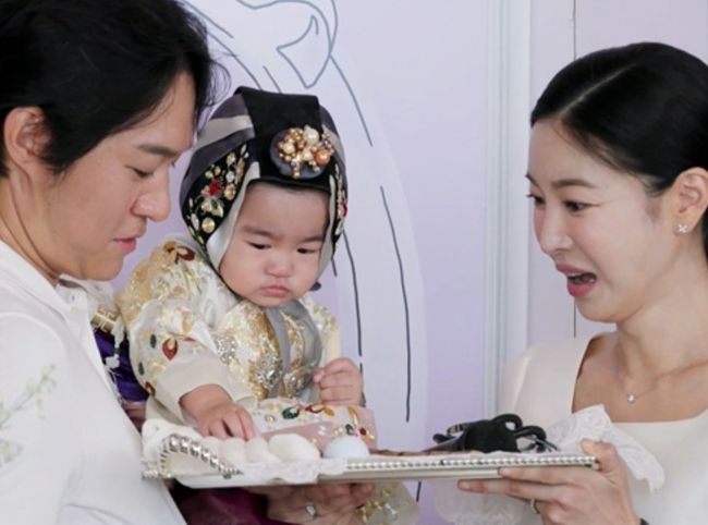 KBS2 ‘슈퍼맨이 돌아왔다’의 김윤지 딸 엘라의 돌잔치를 공개해 눈길을 끈다.