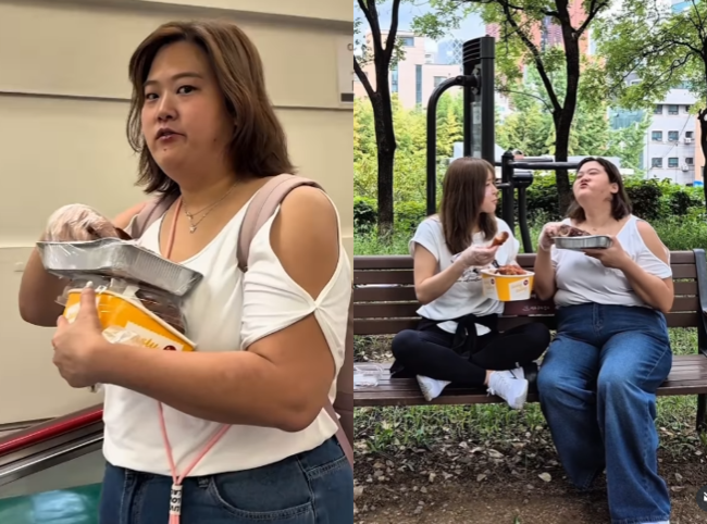 하지만 영상 말미 두 사람은 벤치에서 나란히 앉아 사이 좋게 함께 음식을 나눠먹어 반전을 선사하기도 했다. 이에 박수지 씨는 "세상에 맛있는건 너무 많아요.."라고 고충을 토로했다.
