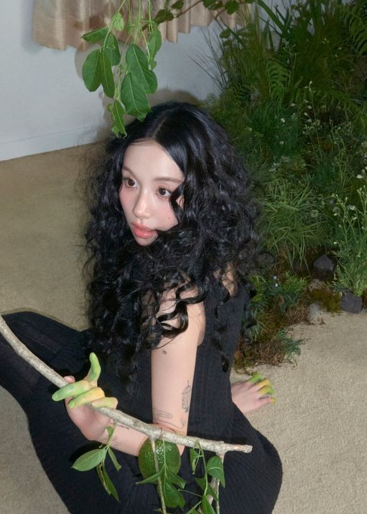 [OSENWORLD] TWICE’s Chaeyoung is drawing global attention after dropping her first solo concept photos, featuring a striking image of her hand painted in avocado green.
