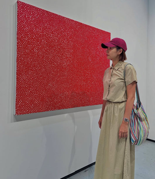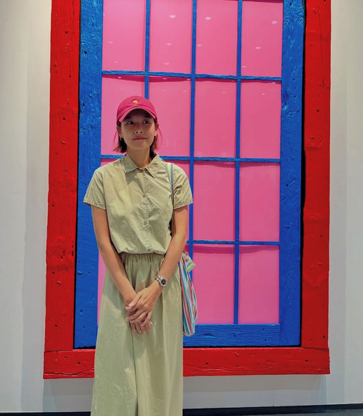 이날 조윤희는 어두운 베이지 톤 투피스 세트에 붉은 캡을 써 자신만의 패셔너블함을 드러냈다. 현대 미술 작품 앞에서 조윤희만의 힙한 느낌은 은은하게 발산돼 마치 하나의 작품처럼 보이는 듯했다.