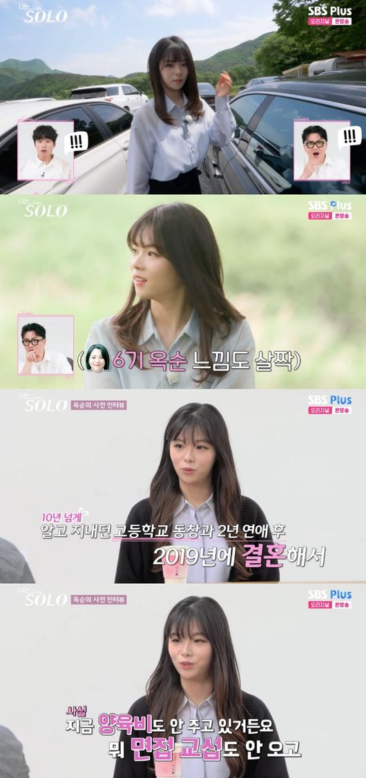 이어진 인터뷰에서 옥순은 34살로 “29살에 결혼했다. 고등학교 동창이랑 2년 연애하고 결혼하고 그 해에 출산했다”라면서도 “전 남편과 안 좋은 일이 생겨서 이혼했다. 양육비도 안 주고 면접 교섭도 안하고 있다. 아예 연락을 안 하고 있다”라며 7살 딸과 지내고 있다고 밝혔다.