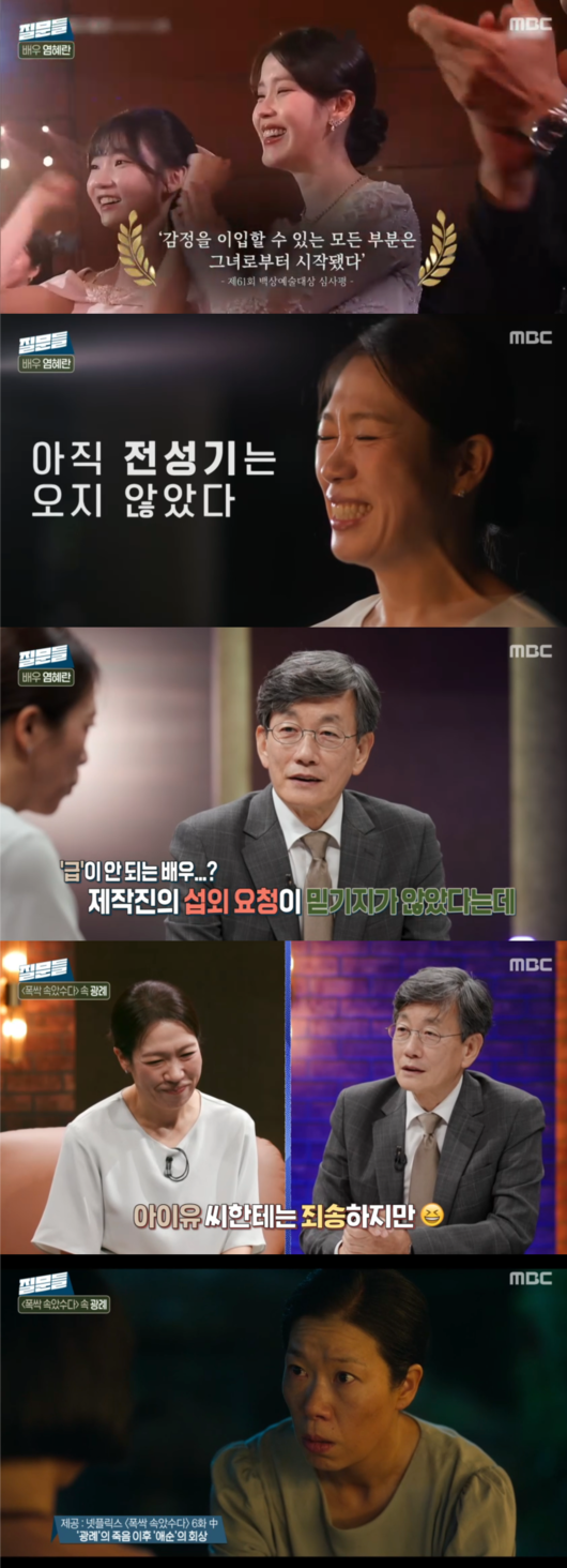 3일 방송된 MBC ‘손석희의 질문들’에는 넷플릭스 화제작 ‘폭싹 속았수다’에서 광례 역으로 깊은 인상을 남긴 염혜란이 출연했다. 그는 “섭외 연락을 한 달 넘게 거절했다. 제가 급이 안 된다고 생각했다. ‘저를요? 어디서요?’라는 질문만 계속했다”며 출연을 망설였던 이유를 털어놨다.