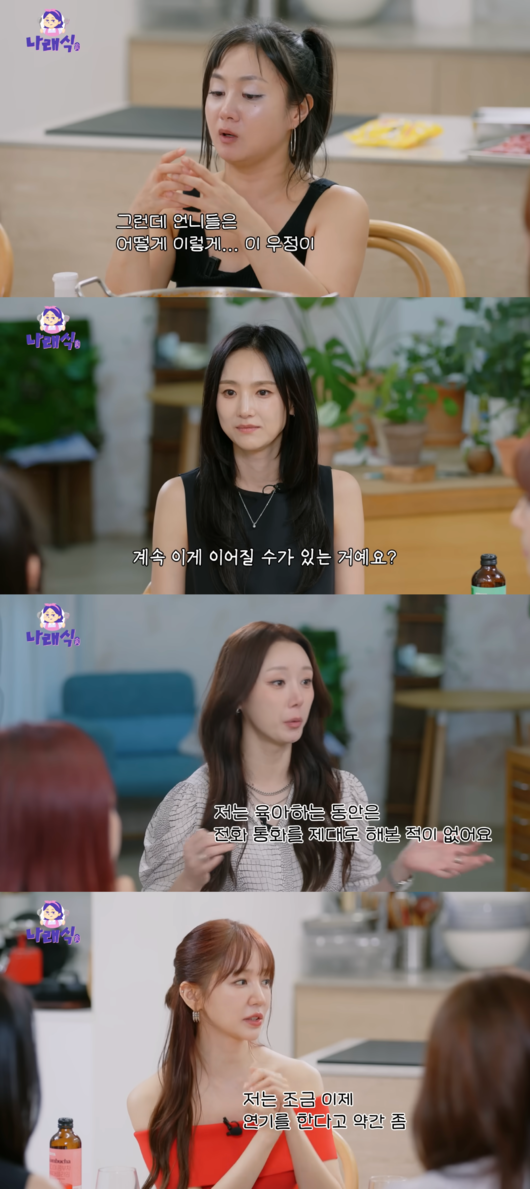 먼저 박나래는 “언니들은 어떻게 이 우정이 중간에 텀 없이 계속 이어질 수 있었냐”고 물었고, 멤버들은 “텀 있었다. 꽤 있었다”고 솔직하게 털어놨다. 김이지는 “저는 육아하는 동안은 전화 통화를 제대로 해본 적이 없다”고 토로했다.
