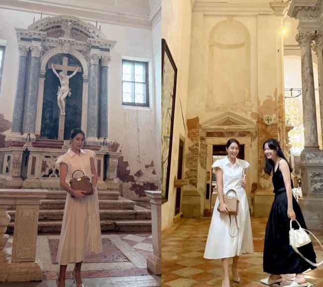 그런데 손예진이 직접 찍어준 사진 한 장이 도마에 올랐다. 성당 제단 앞, 십자가 예수상을 배경으로 명품 가방을 들고 포즈를 취한 이민정의 모습이 공개되자, 일부 해외 팬들이 먼저 불편함을 드러낸 것. 신성한 공간에서 화보처럼 촬영한 게 경솔했다는 지적이었다.