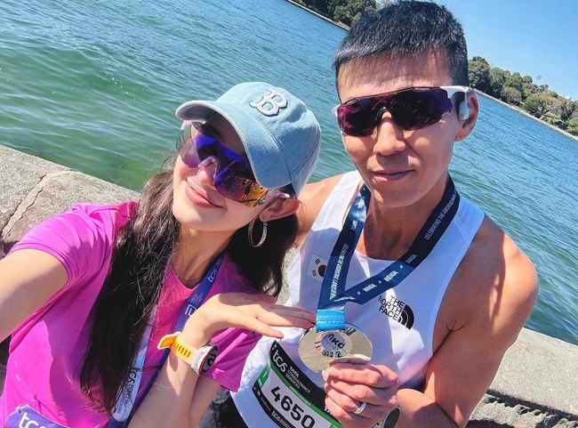 공개된 사진 속에는 호주 시드니에서 열린 마라톤 대회에 참가한 다니엘과 션이 함께 인증샷을 찍고 있는 모습이 담겨 있다. 핑크색 운동복을 입은 다니엘은 환한 미소를 보이며 밝은 근황을 공개했다.