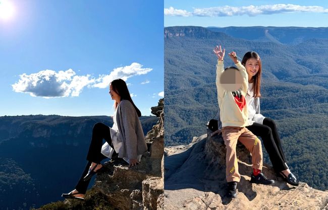 공개된 사진에는 아들 정윤이와 함께 블루마운틴에 오른 이시영의 모습이 담겼다. 특히 그는 절벽 끝에 있는 포토스팟에 걸터앉아 포즈를 취하고 인증샷을 찍었다.