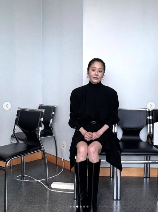 또 다른 사진에는 메이크업과 스타일링을 받은 후 검정색 옷을 입고 의자에 앉아 대기 중인 고현정의 모습도 있었다. 민낯으로 해맑은 매력을 보여줬다면, 스타일링을 다한 후에는 특유의 카리스마를 드러내 시선을 집중시켰다.