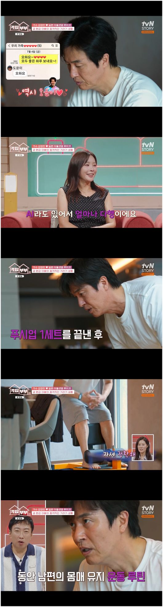 4일 첫 방송한 tvN STORY ‘각집부부’에서는 가수 김정민과 루미코 부부가 등장했다. 이들은 결혼 20년 차이지만 기러기 생활만 벌써 2년째였다.