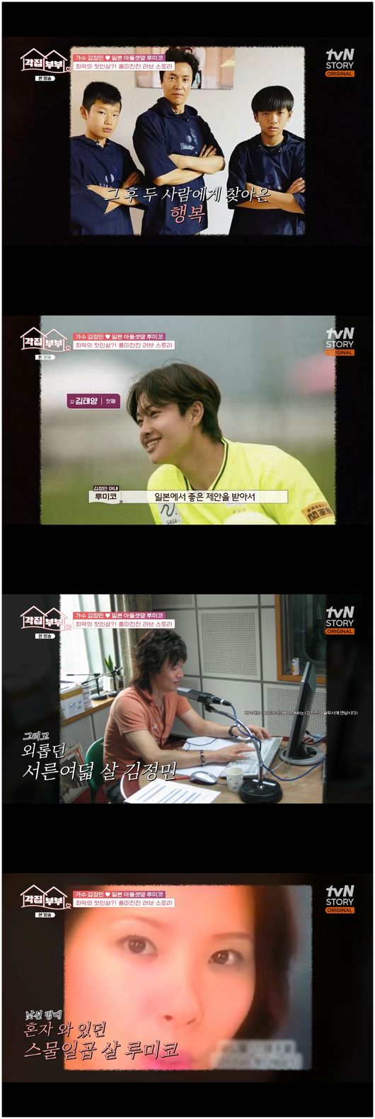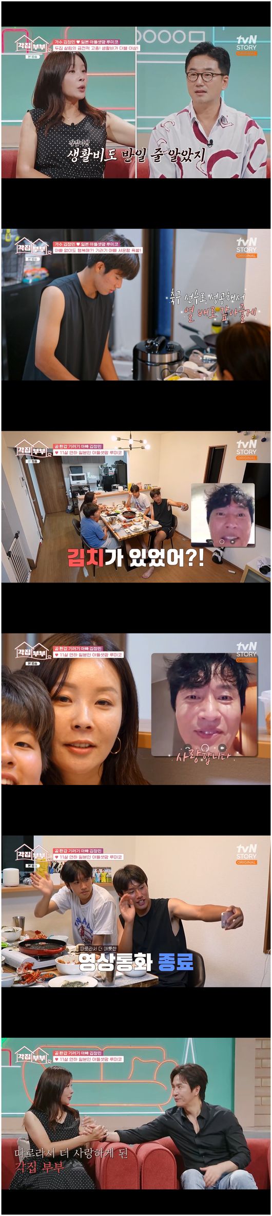 4일 첫 방송한 tvN STORY ‘각집부부’에서는 기러기 생활 2년 차, 김정민과 루미코 부부의 일상이 공개됐다. 루미코는 “첫째 아들이랑 둘째 아들이 축구를 잘해서 일본에서 뛰게 됐다. 그래서 일본에 가게 됐다. 이렇게 기러기 생활이 시작됐다”라고 밝혔다.