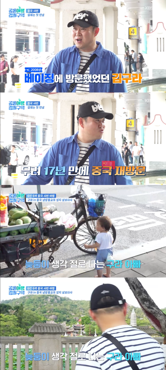 '공동여행경비구역’ 방송인 김구라가 중국 여행 중에도 '늦둥이 아빠'의 면모를 드러내 눈길을 끌었다.