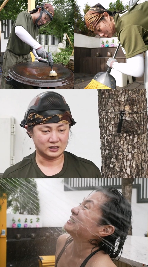 정원 관리에 이어 박나래는 녹이 슨 ‘솥뚜껑 심폐 소생’에 나선다. 땀을 뻘뻘 흘린 박나래는 마당 물청소를 하면서 ‘쾌녀 나래’를 소환해 폭소를 유발한다