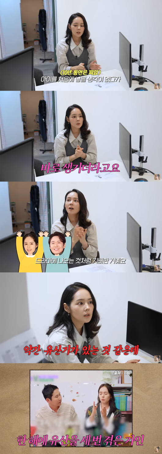 한가인은 이후 계류유산 진단을 받았다며 “선생님이 그때 교통사고 당한 거 같은 거라며 왜 잘못됐는지 검사를 해서 알려주겠다고 했다. 유전적인 결함이 있었다. 그때 제가 1년에 세 번을 같은 주수, 같은 시기에 같은 증상으로 (유산했다). 교통사고 세 번은 안난다고 했는데 한 해에 세번을 유산하니까 그렇게 힘들었던 시절이 없는 것 같다”고 토로했다.