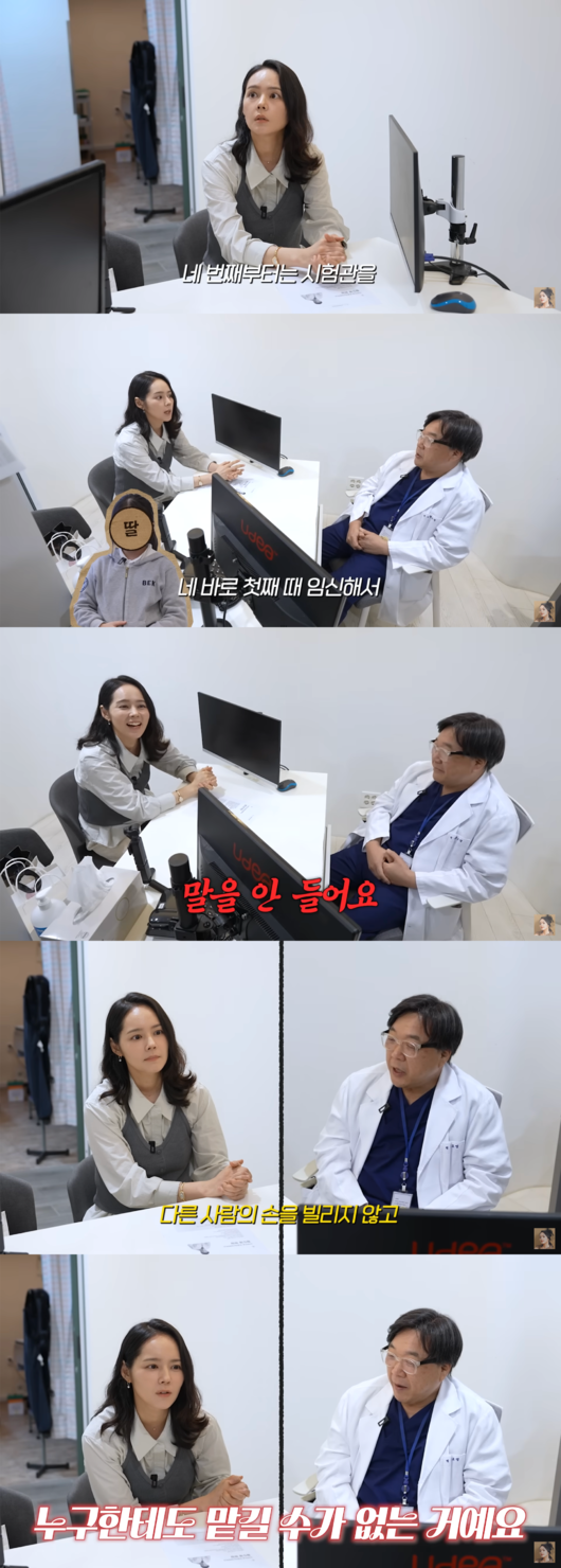 한가인은 시험관 시술을 시작해 첫째 제이 양부터 둘째 제우 군까지 품에 안았다. 한가인은 “저희 아이들 보셨냐. 말을 안 듣는다. 한 번도 아픈 거 없이 잘 지내고 있다”고 근황을 알렸고, 의사는 “잘 지낸다는 이야기를 들으니 흐뭇했다. 아이 낳고 한 두번 연락한 기억이 있는데 다른 사람 손을 빌리지 않고 혼자 다 하시더라. 감동 받았다”고 말했다.