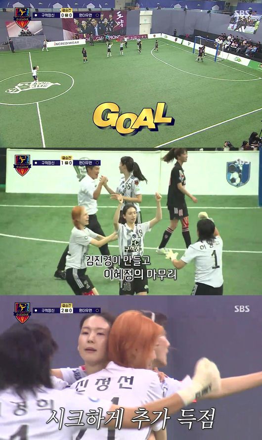 당시 방송에서 구척장신은 이혜정과 김진경의 득점으로 2대 0으로 앞서갔고, 원더우먼 마시마가 만회골을 터트렸으나 경기는 2 대 1로 마무리됐다. 구척장신이 결승전에서 우승하며 창단 첫 리그 우승을 차지했다.