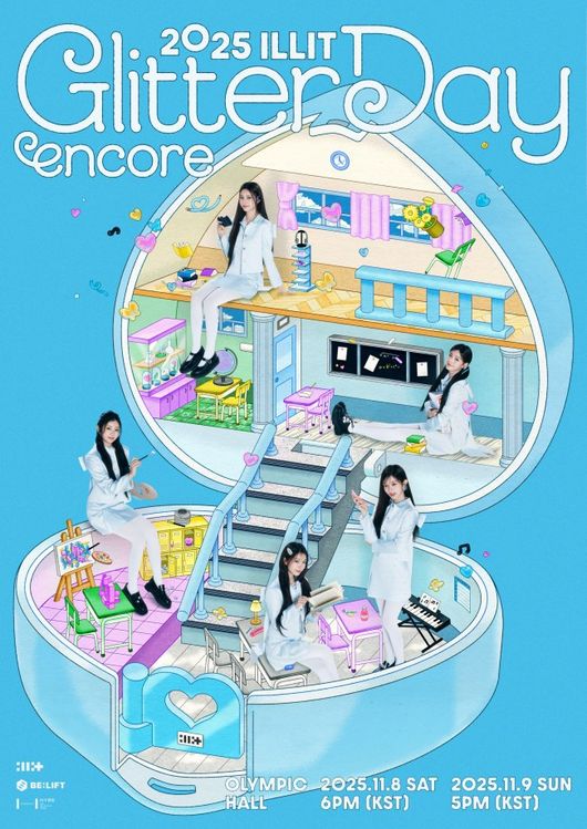 하이브(의장 방시혁) 뮤직그룹의 레이블 빌리프랩은 5일 글로벌 슈퍼팬 플랫폼 위버스(Weverse)를 통해 “여러분의 성원에 힘입어 다시 한번 서울에서 ‘2025 ILLIT GLITTER DAY ENCORE’를 개최한다. 아일릿과 글릿이 만나는 시간, 여러분의 많은 관심 부탁드린다”라고 알렸다. 이에 따르면 아일릿(윤아, 민주, 모카, 원희, 이로하)은 오는 11월 8~9일 양일간 서울 송파구 올림픽공원 올림픽홀에서 앙코르 공연을 진행한다.