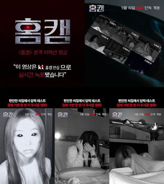 '홈캠'은 의문의 사망사고를 조사 중인 보험조사관 ‘성희’(윤세아)가 집 안에 설치한 홈캠으로 낯선 존재를 목격한 후 공포에 갇히게 되는 24시간 초밀착 공포 영화다. 이번 영상은 CGV용산아이파크몰 템퍼시네마 객석마다 홈캠을 설치하고, 관람하는 관객을 실시간 녹화하여 완성됐다. '홈캠'의 소재인 홈캠과 귀신이 좋아하는 장소로 잘 알려진 극장의 만남은 영화처럼 이상 현상이 찍힐지도 모른다는 은근한 기대감도 불러일으켰다.