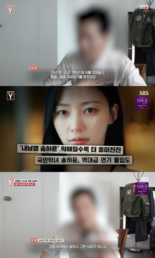 지난 5일 방송된 SBS '궁금한 이야기 Y'에서는 송하윤의 21년 전 학교폭력 의혹이 다뤄졌다. 지난해 드라마 '내 남편과 결혼해줘'로 큰 인기를 끈 그는 갑작스러운 학교폭력 의혹으로 자취를 감췄다.